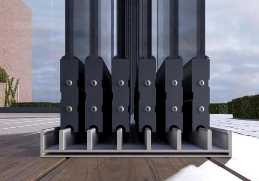 238 in Abständen von 5 cm. Unser System ermöglicht es Ihnen, jede Größe um 12 cm nach oben zu verschieben. Das bedeutet, dass wir eine maximale Glashöhe von 250 cm erreichen können. Unsere Glasschiebewände sind aus hochwertigem, gehärtetem Glas mit einer Stärke von 10 mm gefertigt und unsere passenden Profile sind in 2 Standard-RAL-Farben erhältlich: RAL 9001 und RAL 7016. Unsere Glasschiebewände werden komplett mit unterer Schiene (3, 4, 5 Schienen), Seitenprofilen, Oberprofil, Zugluftstreifen und Griffen geliefert, falls erforderlich.